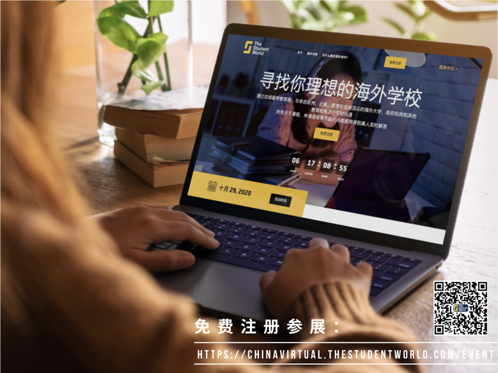 如果您想参加该展会,请提前在The Student World网站上进行免费注册(https://chinavirtual.thestudentworld.com/event)。注册完成后,您的邮箱就会收到一封关于展会详细信息的电子邮件。